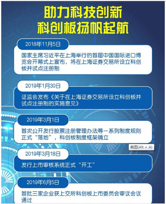2019年6月13日,在第十一届陆家嘴论坛开幕式上,中国证监会和上海市人民政府联合举办了上海证券交易所科创板开板仪式。(来源百度百科)