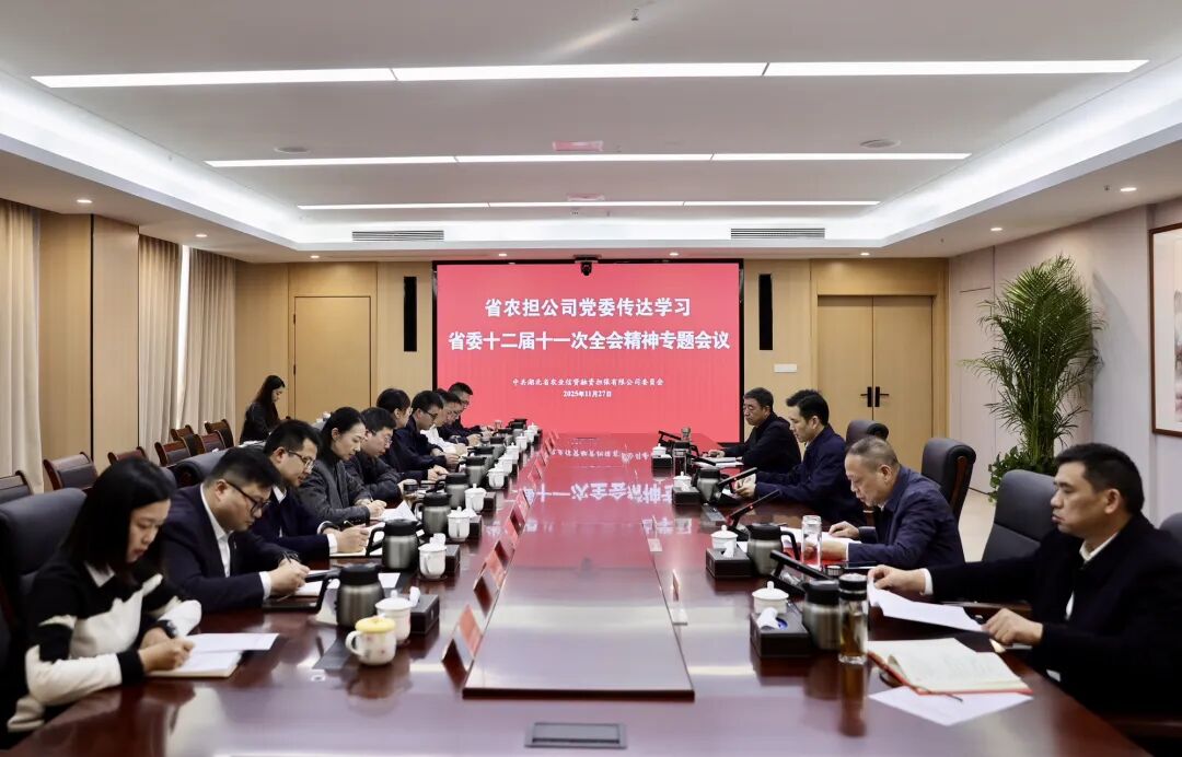 11月27日,省农担公司召开党委(扩大)会议,专题传达学习省委十二届十一次全会精神,研究部署贯彻落实工作。公司党委副书记、总经理隆刚主持会议并讲话。公司在家领导班子成员、各部室负责人参加会议。