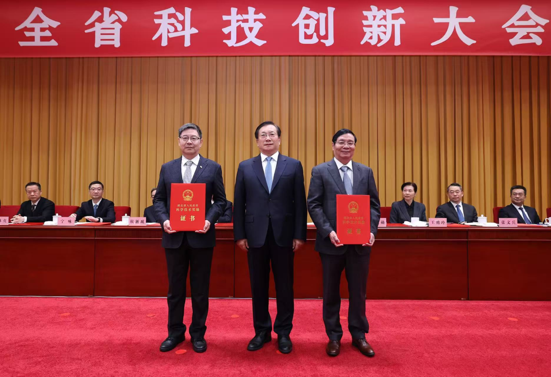 王忠林代表省委、省政府向受到表彰的单位和个人表示热烈祝贺,向全省广大科技工作者致以崇高敬意,向长期以来支持湖北科技创新的各界人士表示衷心感谢。他说,近年来,全省上下始终牢记习近平总书记殷殷嘱托,坚持把科技自立自强当使命、视创新创造如生命、抓创新发展像拼命,“十四五”时期湖北科技创新取得明显成效。我们更加深切地体会到,习近平总书记重要要求和关怀激励是湖北科技创新的根本指引和强大动力,向高而攀、持续用力是湖北科技创新取得历史性成就的关键,知重负重、担难担险是湖北闯出科技创新之路的精神密码,上下同欲、合力创新是湖北科技创新蓬勃发展的重要保障。踏上“十五五”新征程,全省上下要胸怀大局、乘势而上,更大力度实施科创引领战略,奋力把湖北打造成为原始创新策源高地、新质生产力发展高地、近悦远来人才高地、创新生态示范高地,为加快建成中部地区崛起的重要战略支点提供有力支撑。