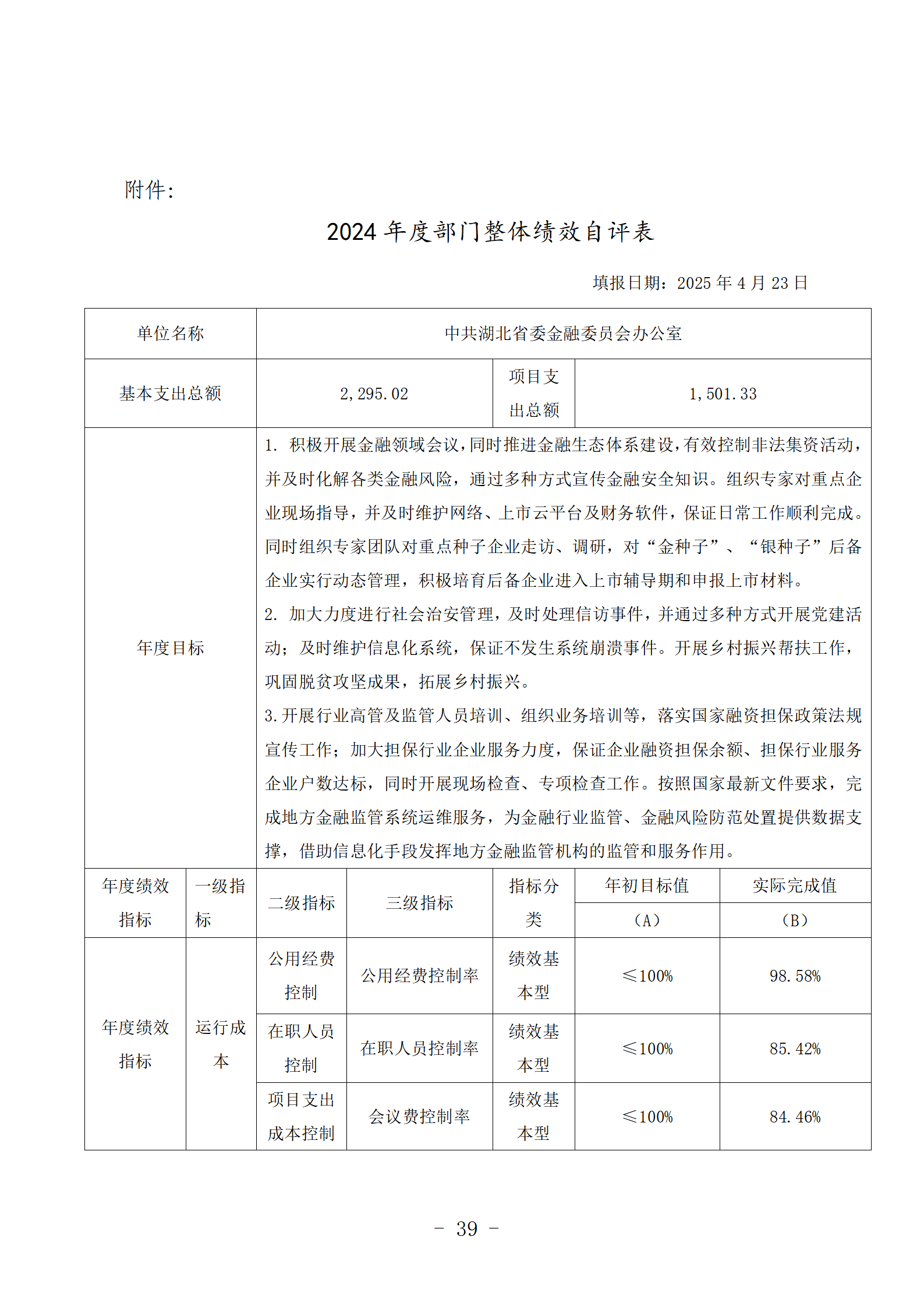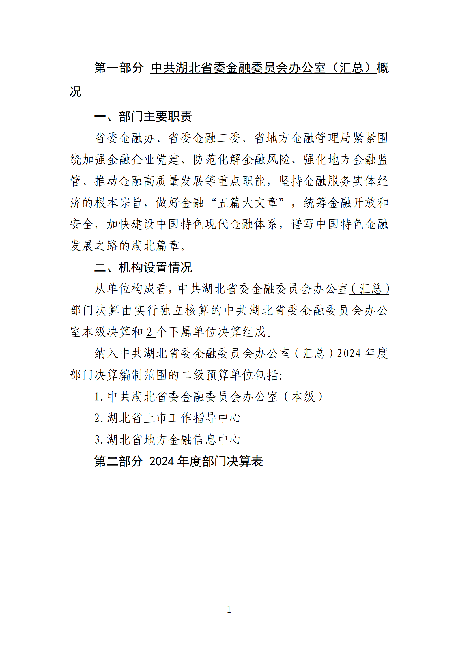 中共湖北省委金融委员会办公室(汇总)2024年度部门决算