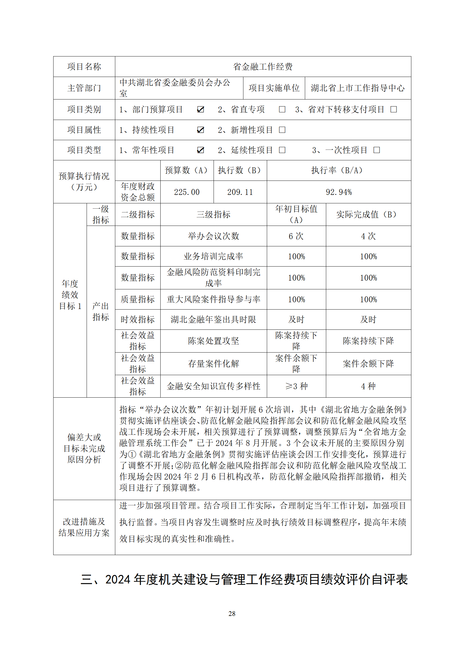 中共湖北省委金融委员会办公室(本级)2024年度单位决算