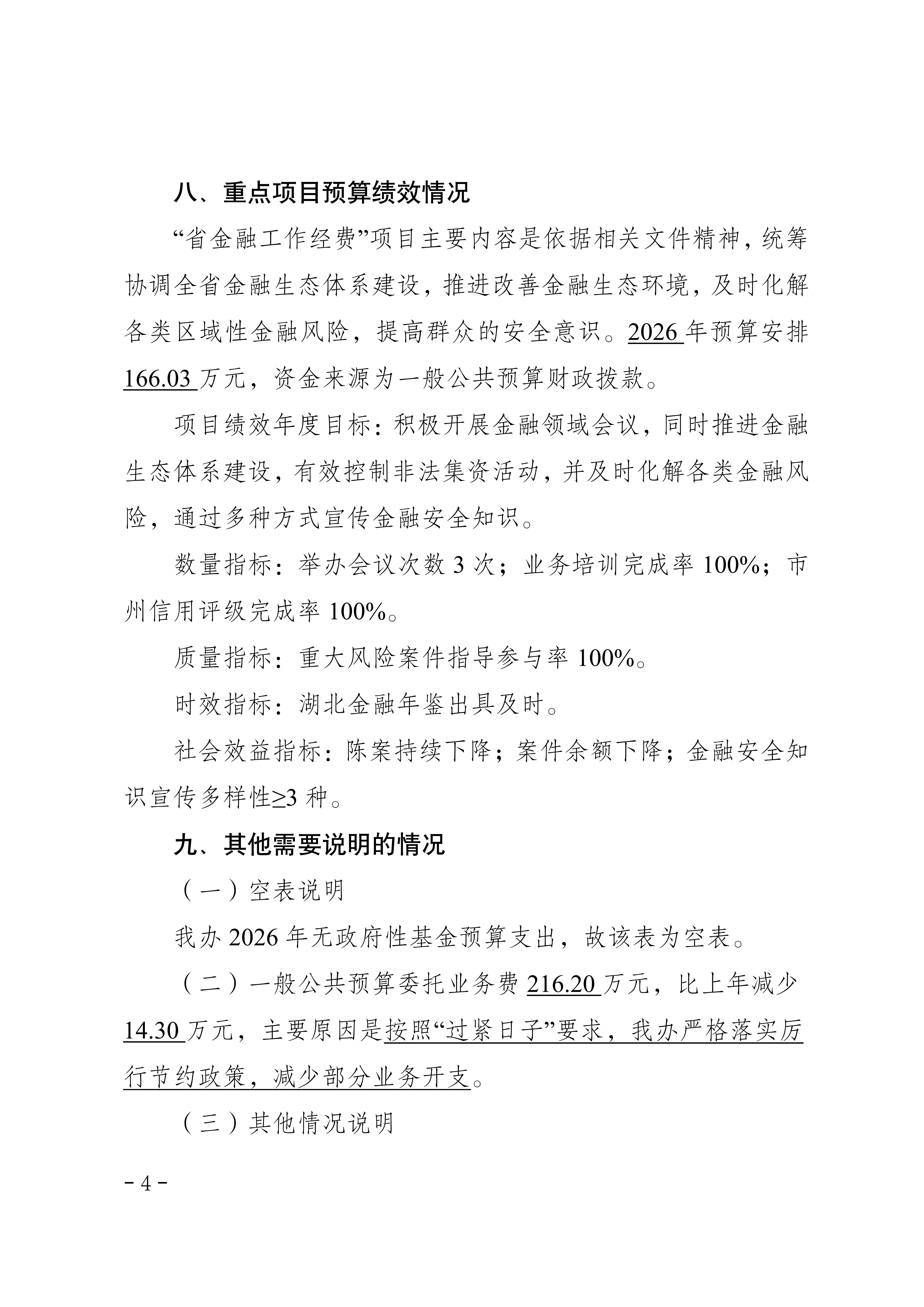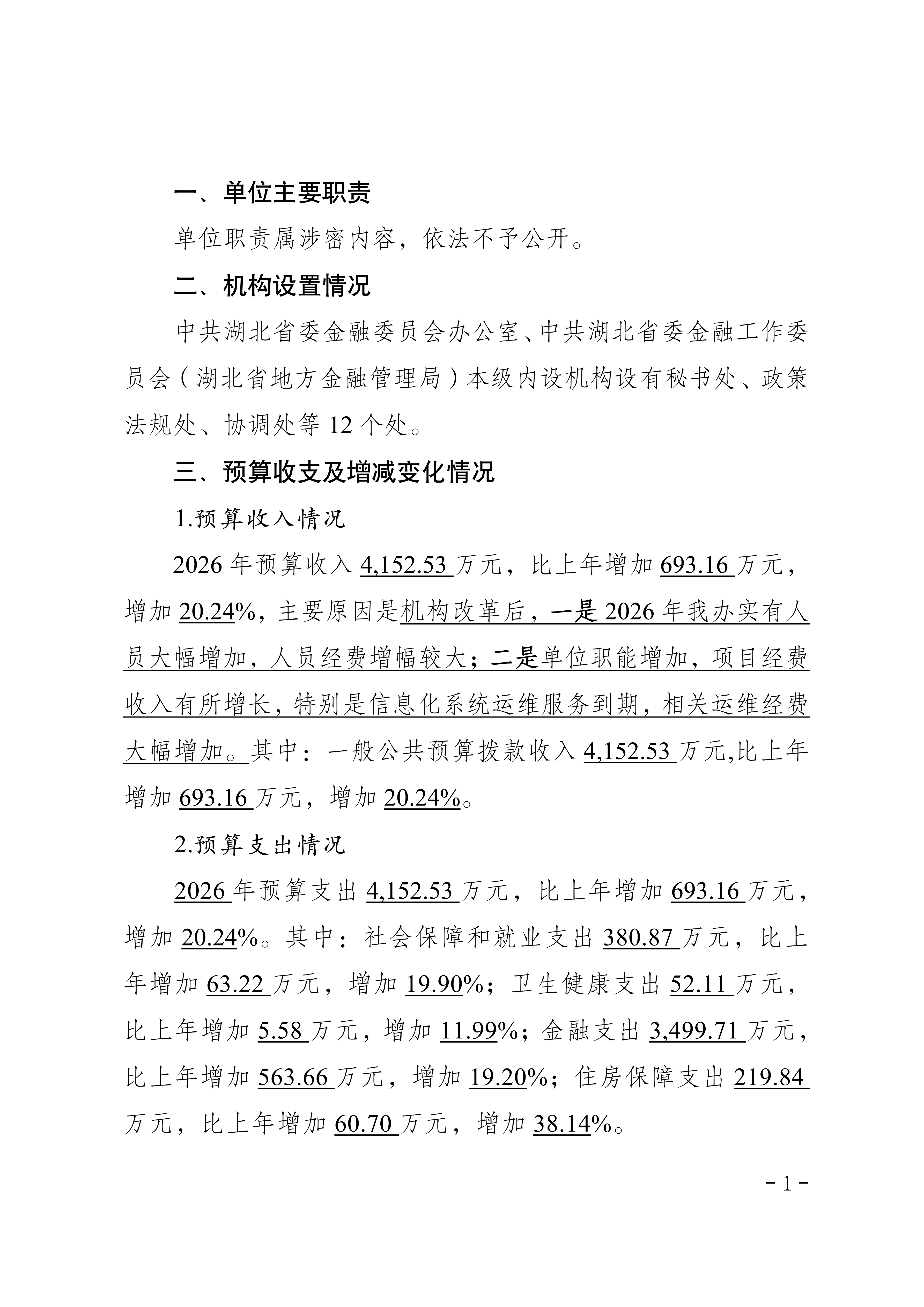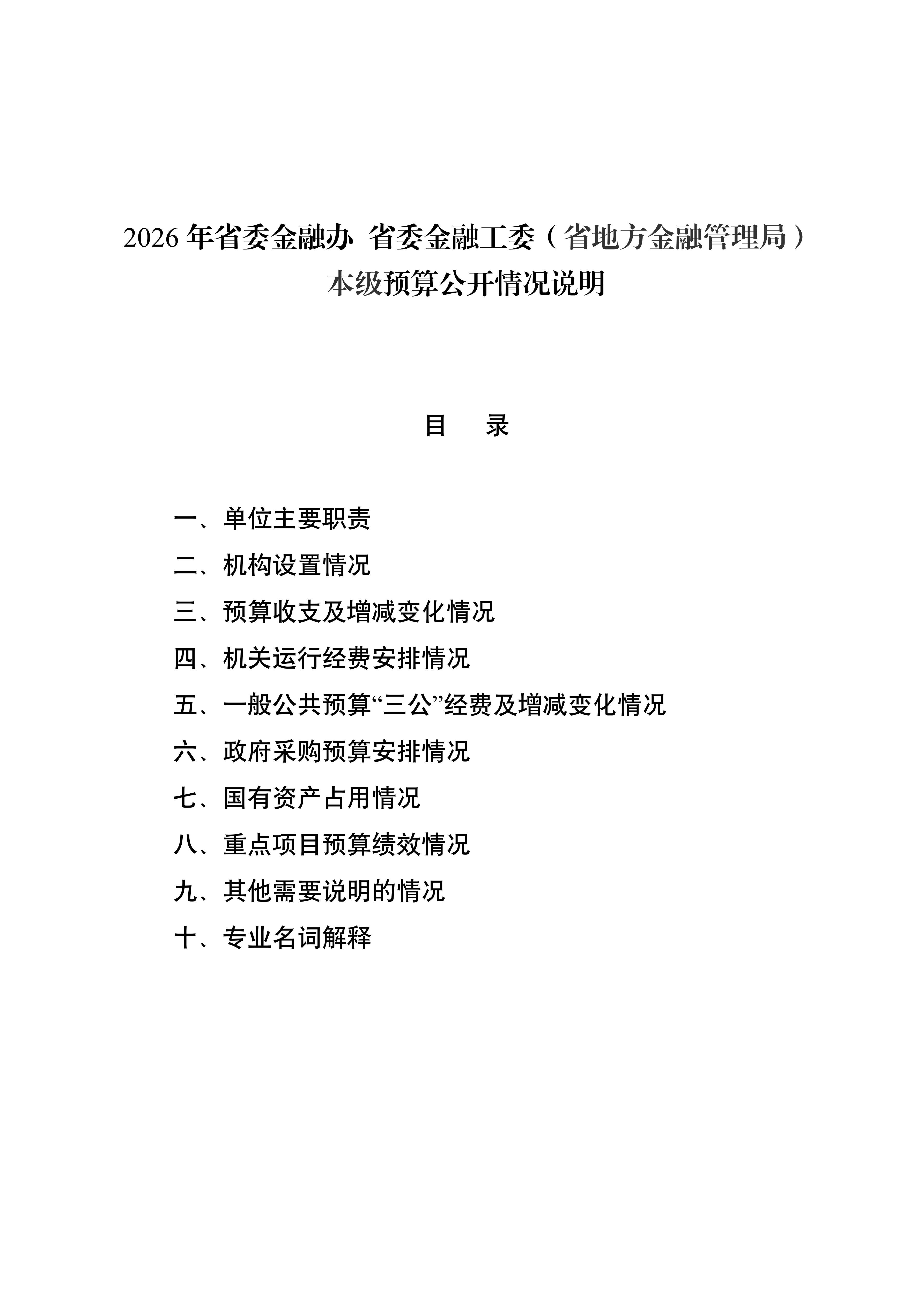 2026年省委金融办 省委金融工委(省地方金融管理局)本级预算公开情况说明